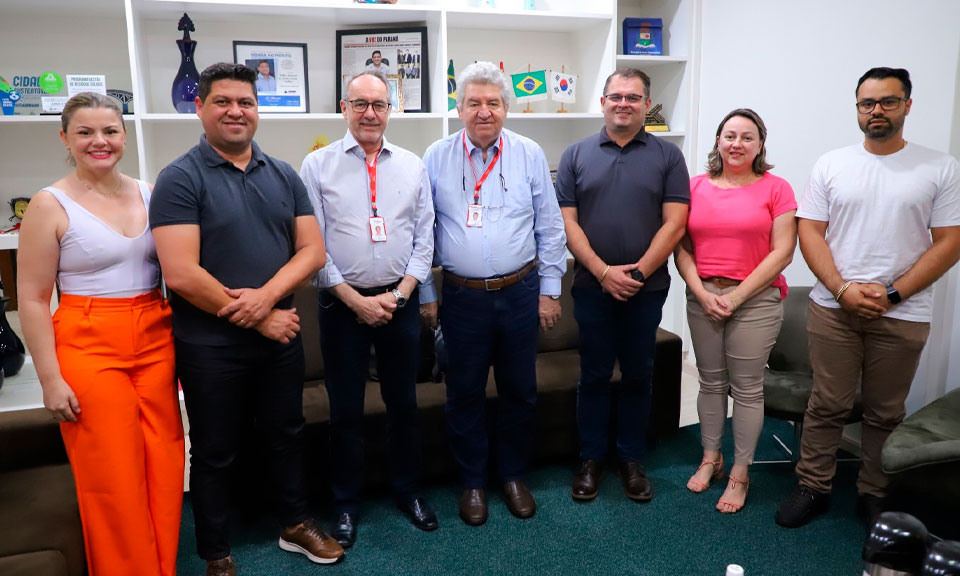 Na tarde desta quinta-feira (19), o presidente da Frimesa Elias Zydek, acompanhado do Superintendente Industrial Vitor Frosi, estiveram reunidos para discutir a realidade do abatedouro da empresa e os projetos em andamento, com o prefeito Valter Aparecido Souza Correia, Valtinho, vice-prefeito licenciado e Superintendente de Administração e Finanças Cloves Luiz Angeleli, Secretária de Habitação e Assuntos Comunitários Izabel Claro, Secretária do Trabalho, Emprego e Turismo Milene Angeleli e o Secretário de Planejamento, Infraestrutura e Obras Roberto Daniel Barbosa.