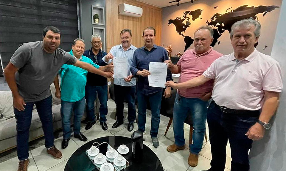 Nesta quinta-feira (19), o prefeito Toninho, acompanhado do vice-prefeito Orivaldo e dos vereadores Francisco Antônio de Paula (Paçoca), Miguel Dias, Aparecido Leonardo (Biguá) e Luiz Marcelino do Carmo (Luizinho), estiveram no escritório do deputado Marcel Micheletto, em Assis Chateaubriand, para o recebimento da documentação referente à emenda.