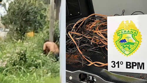 Após denúncia, a equipe policial da Polícia Militar de Assis Chateaubriand, deslocou até uma obra da prefeitura, na Avenida São Paulo, no Jardim Progresso, por volta das 16h30 de ontem (28), sendo que no local encontrou um rapaz com fios elétricos nas mãos e mais um amontoado próximo ao mesmo, pesando aproximadamente 10kg, foi dada voz de prisão ao autor e encaminhado a Polícia Civil.