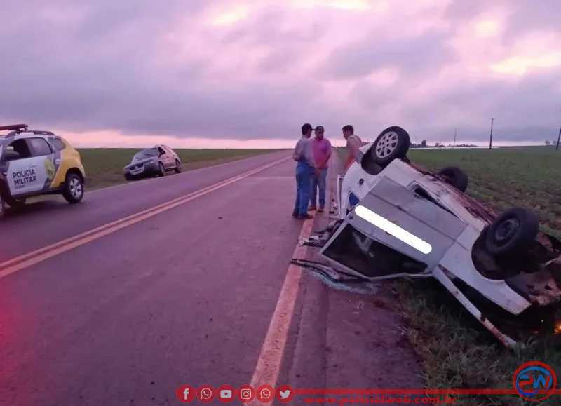 Um capotamento foi registrado por volta das 18h30 desta sexta-feira (27), na rodovia PR 364, trecho que liga Assis Chateaubriand ao Encantado do Oeste, onde envolveu um Fiat Uno Mille, conduzido por um jovem de 20 anos de idade.