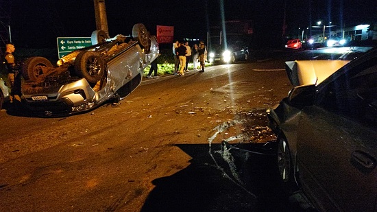 Um acidente envolvendo dois veículos, seguida de capotamento, foi registrado na noite deste sábado (04), rodovia PR 317, na saída de Toledo para o município de Ouro Verde do Oeste, no trevo de acesso a rodovia PR 585, que liga Toledo ao município de São Pedro do Iguaçu e envolveu o Chevrolet Cobalt com placas de Toledo e uma camionete Toyota Hilux, com placas de Assis Chateaubriand.