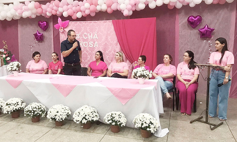 Na noite de quarta-feira (08) foi realizada em Brasilândia do Sul a terceira edição do Chá Rosa, que faz alusão a campanha de prevenção ao câncer de mama. O evento é uma iniciativa do Governo Municipal através da Secretaria Municipal de Saúde, que tem a frente a secretária Aletheia Patrícia Busch. O salão da ASSEMBRAS foi preparado com muito carinho e ficou lotado de pessoas que vestiram a camisa (literalmente) da campanha. Marcaram presença, além da organizadora Aletheia, as seguintes autoridades: prefeito Alex Cavalcante, primeira dama Leila Cavalcante e as enfermeiras: Ana Paula Alkmim Thramm de Souza Enomoto e Rosimeri Lima Ramalho.
