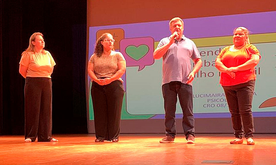 A Secretária de Assistência Social e da Mulher e vereadora licenciada Elizandréia Pardinho, agradece a equipe do CREAS pela organização do evento, bem como a Secretaria Municipal de Educação e o Núcleo Regional de Educação pela parceria e pela liberação dos alunos para participarem da capacitação.