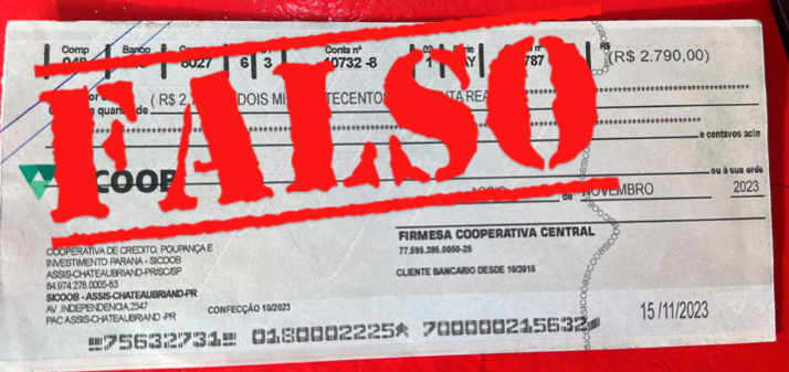 Notícias para relatar que um rapaz percorreu alguns comércios de Assis Chateaubriand com o objetivo de trocar cheques falsos de cooperativas da região. Lembramos que as cooperativas não emitem cheques. Os pagamentos são feitos via transferência bancária.