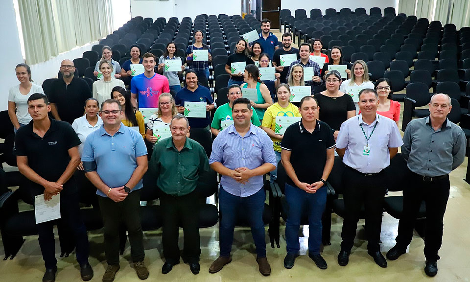 Na tarde desta quinta-feira (23), foi realizada a cerimônia de entrega dos certificados aos concluintes do Curso de Formação Inicial na área de gestão, no Auditório Municipal do Centro de Convenções. O curso, realizado em parceria com o Instituto Federal do Paraná (IFPR), teve como objetivo oferecer treinamento e capacitação para servidores públicos da Secretaria da Saúde do município de Assis Chateaubriand e do hospital beneficente Moacir Micheletto.