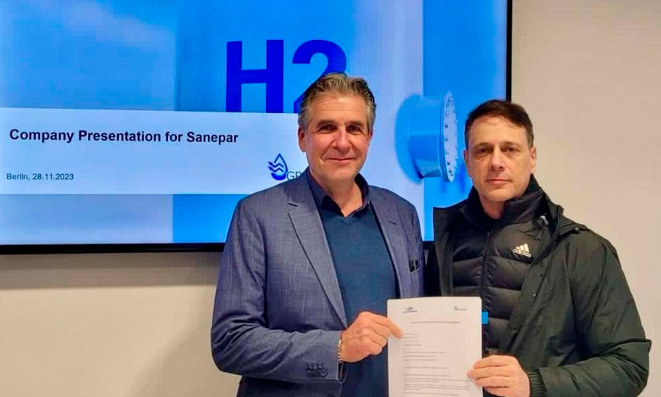 A Sanepar pode ter a segunda planta do mundo de hidrogênio renovável em parceria com a empresa alemã Graforce. O termo de parceria entre as empresas foi assinado nesta terça-feira (28), em Berlim, pelo diretor-presidente da Sanepar, Claudio Stabile, e o presidente da Graforce, Jens Hanke. A parceria visa o desenvolvimento de estudos sobre produção de hidrogênio renovável, a partir da plasmólise do biometano, oriundo do tratamento do esgoto.