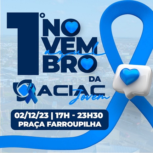 Adiado do dia 14 de novembro devido as chuvas o evento “Novembro Azul/ACIAC Jovem”, acontece neste sábado, 2, das 17h às 23h30 na Praça Farroupilha. Com o objetivo de reforçar os cuidados e as boas práticas na prevenção da saúde masculina, o ‘Novembro Azul da ACIAC Jovem’ tem a proposta de contribuir com o movimento por meio da construção de um ambiente cheio de experiências e atividades que os homens e suas famílias vão se familiarizar. O intuito é fomentar ideias criativas trazidas em parceria com os patrocinadores de vários nichos, desde gastronomia através de um churrasco com o Empório da Carne, até área de veículos novos, antigos e agrícolas.