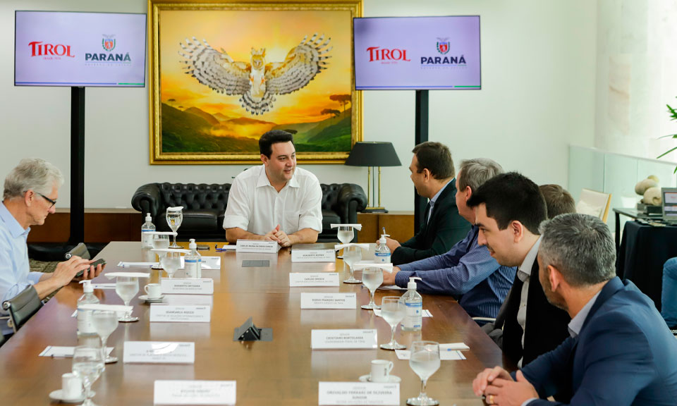 PRESENÇAS – Também participaram do encontro o vice-governador Darci Piana; o secretário de Agricultura e Abastecimento, Norberto Ortigara; o diretor de Relações Internacionais e Institucionais da Invest Paraná, Giancarlo Rocco; o diretor de Mercado e Novos Negócios da Invest Paraná, Gustavo Cejas; o diretor-executivo comercial da Tirol, Carlos Dresch; o gerente jurídico da Tirol, Diego Franzoi Santos; e o coordenador fiscal da Tirol, Cristiano Bortolanza.