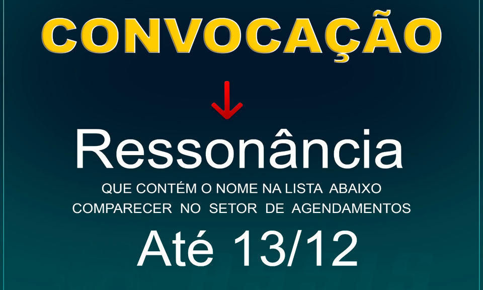 A Secretaria de Saúde de Assis Chateaubriand está convocando os pacientes que estavam aguardando pelo exame de ressonância. É necessário que esses pacientes compareçam ao Setor de Agendamento do Posto de Saúde Central até o dia 13 de dezembro.