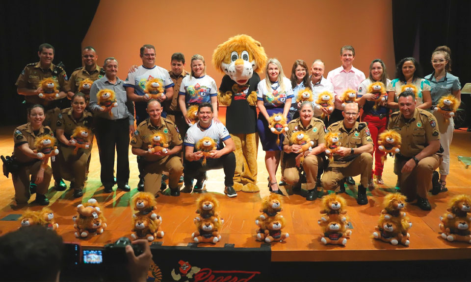 Esteve presente também na formatura o símbolo do Proerd, o leão que simboliza a força, a garra e a resistência que as crianças devem ter todos os dias.