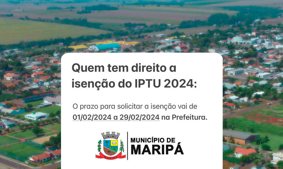 A isenção abrange apenas o pagamento do Imposto Predial e Territorial Urbano – IPTU. As demais taxas de serviços urbanos, como a Taxa de Limpeza Pública e a Taxa de Conservação de Vias, serão lançadas e cobradas normalmente.