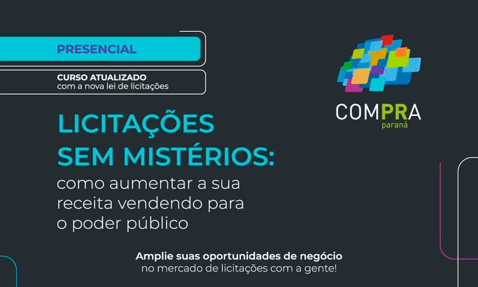 Cafelândia recebe nos dias 14, 15 e 16 de fevereiro às 19h, o curso Licitações sem mistérios: como aumentar a sua receita vendendo para o poder público. O curso será ministrado na Acicaf e oferece a oportunidade de aprender sobre o mercado de licitações e o ingresso a venda para o poder público em todo o território nacional.