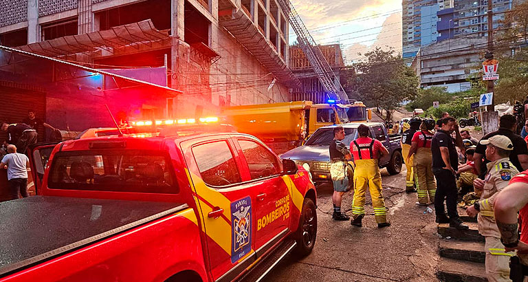 Bombeiros militares do Paraná estão desde segunda-feira (12) ajudando no combate a um incêndio de grandes proporções que atingiu um prédio em Ciudad del Este, no Paraguai, na fronteira com o Brasil, perto de Foz do Iguaçu. O local é um edifício em obras de aproximadamente 25 andares que fica no centro da cidade, a cerca de 650 metros da Ponte da Amizade. De acordo com os Bombeiros Voluntários do Paraguai, não há vítimas desaparecidas nem feridos no prédio.