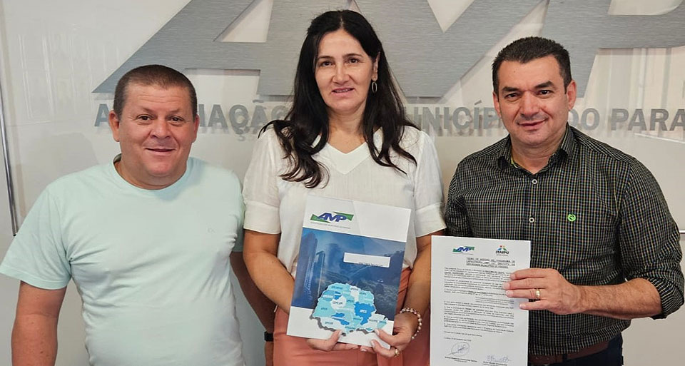 A Prefeita Elza Haase Rodrigues acompanhada do Chefe de Gabinete Antônio Carlos Paulino de Souza esteve na sede da Associação dos Municípios do Paraná (AMP) em Curitiba na manhã dessa terça-feira (27/02), onde assinou junto ao Presidente da AMP e Prefeito de Santa Cecília do Pavão, Edimar Santos o Termo de Adesão ao Programa AMP – Itaipu 4.0, que irá beneficiar 16 mil servidores municipais de todas as 399 cidades paranaenses, em quatro pós-graduações gratuitas.