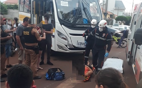 Por volta das 18h10 (27), uma equipe da PM recebeu um chamado, para atender um acidente de trânsito, em frente ao colégio CCM Guimarães Rosa, em Assis chateaubriand, sendo que no local, a equipe verificou que um ônibus teria batido contra uma pedestre, sendo que o SAMU já havia sido acionado por pessoas que estavam no local.