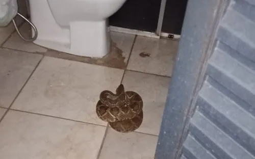 Segundo informações no local, o morador entrou no banheiro, quando escutou o guizo da cobra, que tem um metro e meio, se assustando e de imediato acionando os Bombeiros para capturar.