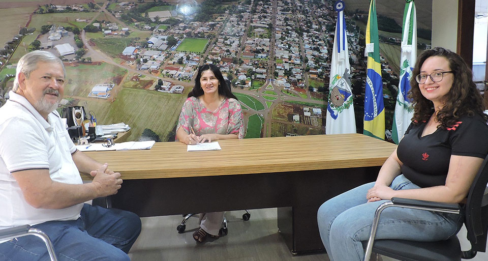 A psicóloga Viviane assinou o termo de posse na quarta-feira (13/03) e recebeu as boas-vindas da prefeita, Elza Haase Rodrigues, secretária de Assistência Social, Dhyellen Ventura Soltoski, e do assessor técnico, Flávio Pedro Frighetto.