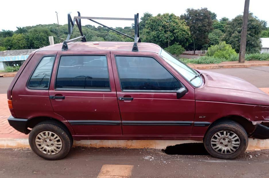 Por volta das 16h30 de ontem (31), uma equipe da PM foi acionada pela central, pois um veículo teria invadido o canteiro central e colidido em uma placa de trânsito próximo a antiga rodoviária.