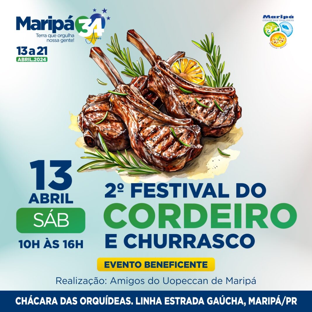 O 2º Festival do Cordeiro e Churrasco, realizado pelo grupo Amigos do Uopeccan de Maripá, irá integrar a programação de aniversário do município de Maripá. O evento beneficente será realizado no dia 13 de abril, das 10h às 16h, na Chácara das Orquídeas, localizada na linha Estrada Gaúcha, interior de Maripá.