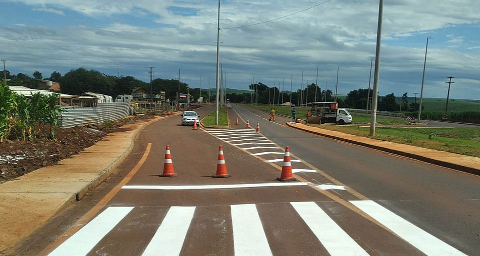As frentes de trabalho estão concluindo a implantação de sarjetas triangulares de concreto, dispositivos do sistema de drenagem de águas, e também os serviços complementares, como plantio de vegetação nos espaços vizinhos à pista, colocação de cercas e de abrigos de parada de ônibus, entre outros.