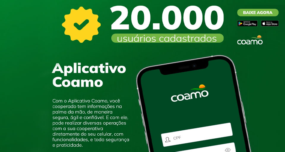 A qualidade e a inovação consistente são valores da Coamo. Acompanhando a evolução, a cooperativa lançou em 2021 o seu aplicativo, que se tornou um novo canal de relacionamento e propiciou mais proximidade e interação dos negócios dos cooperados com a Coamo. Neste 15 de abril, a Coamo alcançou a marca de 20.000 usuários do Aplicativo Coamo, que fornece aos cooperados Informações na palma da mão, de maneira segura, ágil e confiável.