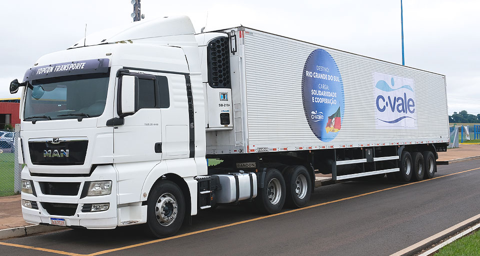 Além das 56 toneladas de donativos enviadas na semana passada entre a C.Vale, Pluma e comunidade de Palotina, essa semana estão saindo caminhões fretados pela cooperativa com donativos centralizados no Corpo de Bombeiros e nos municípios de Guaíra e Maravilha (SC).