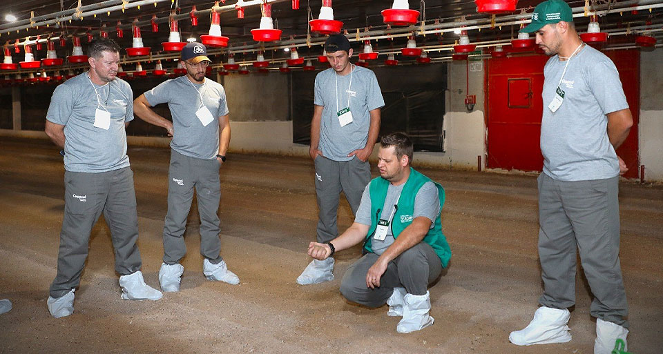 Entre os pontos abordados em todo o curso estão ambiência, sanidade, controle de roedores, controle de cascudinho, controle de salmonela, luminosidade, manejo de cama, ventilação, biosseguridade, bem-estar animal, automação, entre outros fatores que fazem a diferença nos resultados de cada lote.