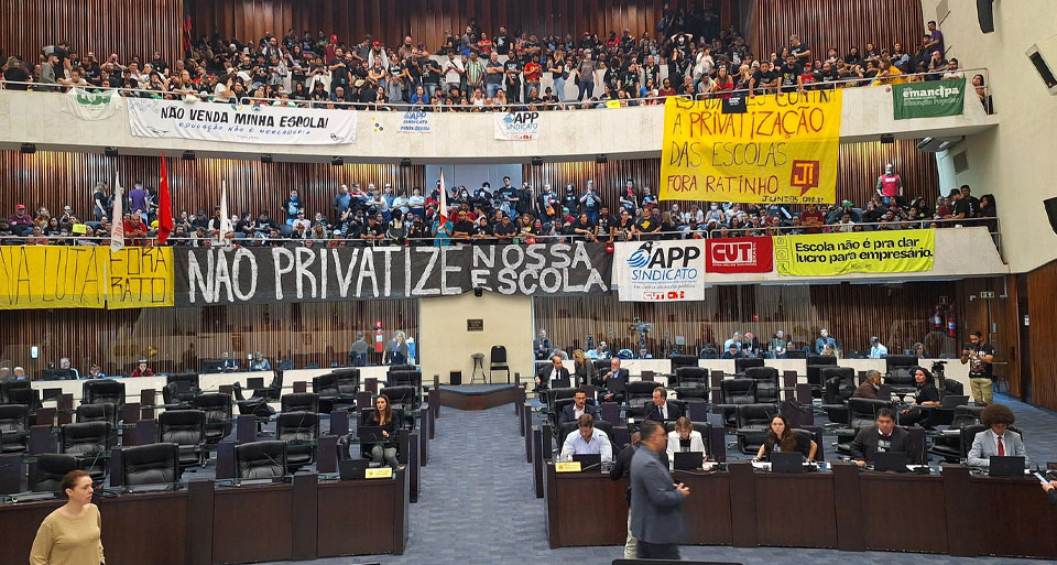 Por 39 votos a 13, a Assembleia Legislativa do Paraná (Alep) aprovou nesta segunda-feira (3) em 1º turno o projeto de lei do governo estadual que propõe terceirizar a gestão de escolas públicas.