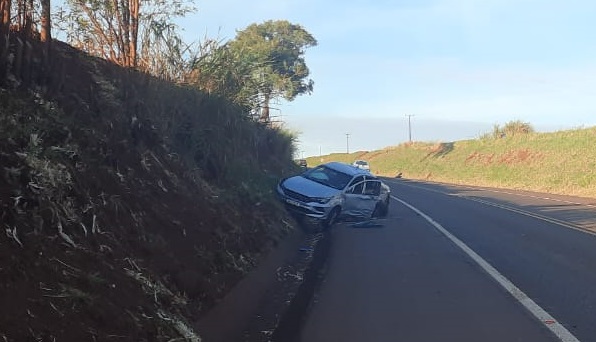 Ato contínuo o Cronos chocou-se contra um barranco localizado na margem direita da rodovia e capotou por sobre a pista de rolamento.