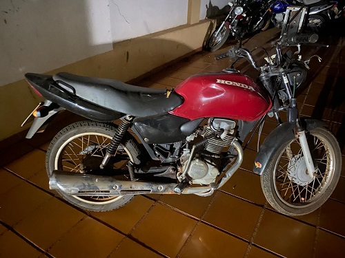 Por volta das 22h00 de ontem (10), uma equipe da PM, recebeu uma informação de uma pessoa, relatando que uma motocicleta que havia sido furtada na madrugada de domingo, estava abandonada no pátio da antiga rodoviária, localizado na Rua do Bosque, centro.