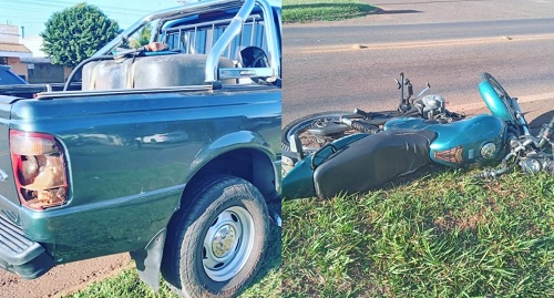 Um acidente de trânsito foi registrado na manha de hoje (13), na Avenida Dom Pedro II, saída para Jesuítas, região do Jardim Araçá, onde envolveu uma moto Honda CG, placa de Nova Aurora e uma camionete, placas Mercosul, sendo que o piloto da moto saiu com ferimentos.