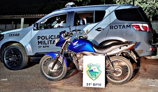 Por volta das 20h55 de ontem (22), uma equipe da ROTAM da PM, durante trabalhos investigativos na praça central de Iracema do Oeste, constatou que uma motocicleta que trafegava pelas proximidades do local estava com alerta de furto/roubo.