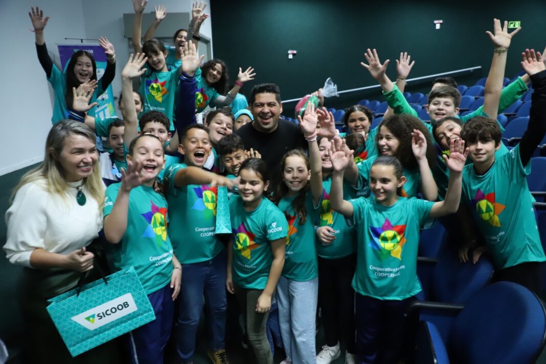 Estiveram presentes a Secretária de Educação e Cultura Fátima Sobral, os vereadores Francisco do Nascimento e Matheus Henrique Ribeiro Marques, do presidente do Conselho de Administração do Sicoob Médio Oeste do presidente Rafael Katarinhuk e de Nadir Lulu, diretora-superintendente. O Programa Cooperativa Mirim faz parte do Instituto Sicoob.