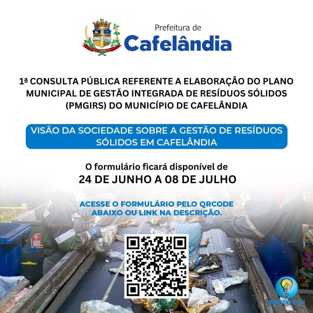 A Secretaria de Agricultura e Meio Ambiente de Cafelândia convida todos os cidadãos a participarem da Consulta Pública para a elaboração do Plano Municipal de Gestão Integrada de Resíduos Sólidos (PMGIRS).