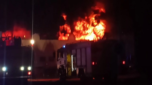 Na noite desta quinta-feira (25), um incêndio de grandes proporções está sendo combatido pelo Corpo de Bombeiros de Toledo na empresa FM Pneus, localizada na rodovia PR 182, na saída de Toledo para Palotina.