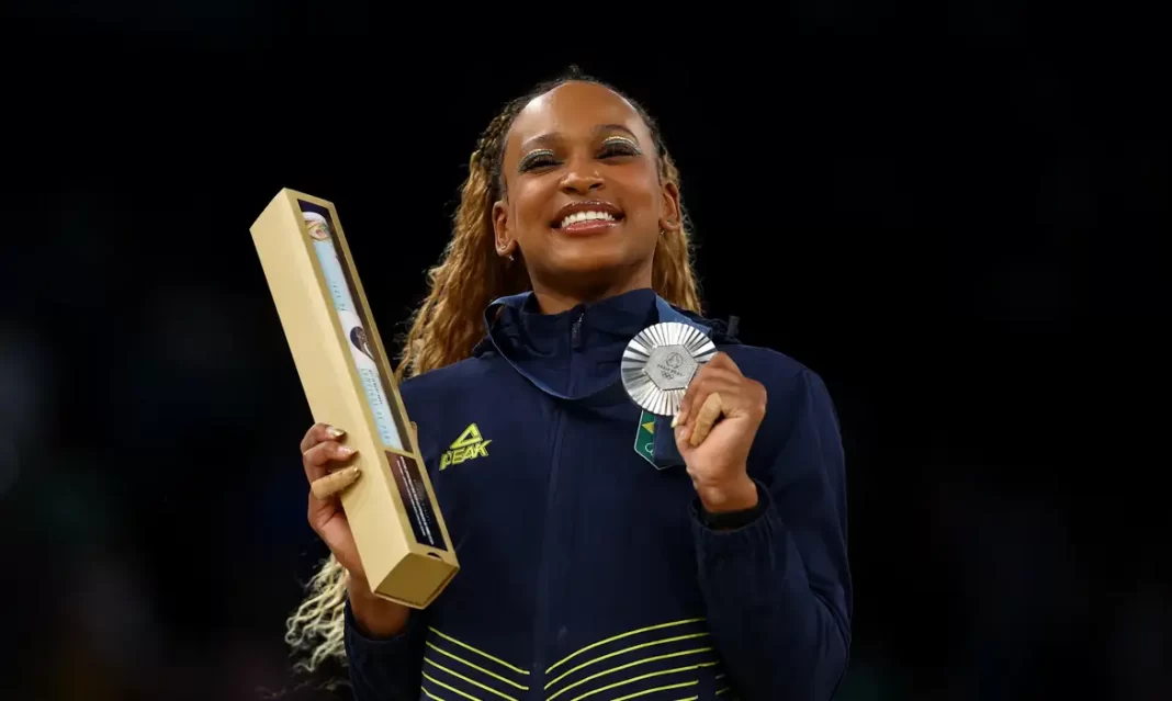 A ginasta brasileira de 25 anos já subiu no pódio outras duas vezes durante a Olimpíada de Paris: ganhou o bronze na prova por equipes e a prata no individual geral. Nos Jogos de Tóquio, também levou um ouro e uma prata.