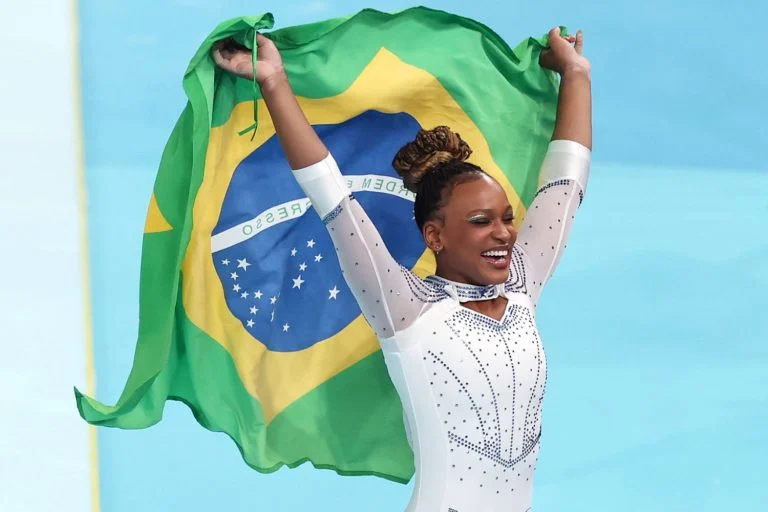 Nesta quinta-feira, a ginasta brasileira Rebeca Andrade brilhou intensamente na Bercy Arena, em Paris, ao conquistar sua quarta medalha olímpica. A prata reluziu tanto quanto o ouro, e Rebeca mostrou, mais uma vez, sua excelência no individual geral da ginástica artística.