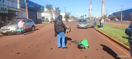 Um acidente de trânsito foi registrado agora pouco, por volta das 09h00 na Avenida Tupãssi, em frente a Monalisa Moveis, no Jardim Paraná, trecho que liga trevo de acesso da PR 239 a Paroquia São Francisco de Assis e envolveu uma motocicleta, a principio conduzido por um rapaz de nome Marcos e uma F 4000.