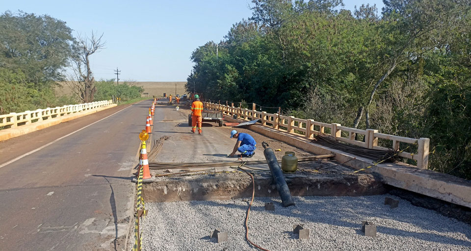 Recentemente foram concretadas as novas lajes de transferência, que ficam na ligação entre a ponte e os aterros de acesso, garantindo mais proteção contra a ação do clima e segurança para os usuários.