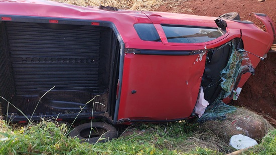 No acidente envolveu um veículo com placas do Paraguai e uma Pick Up, na cor vermelha.