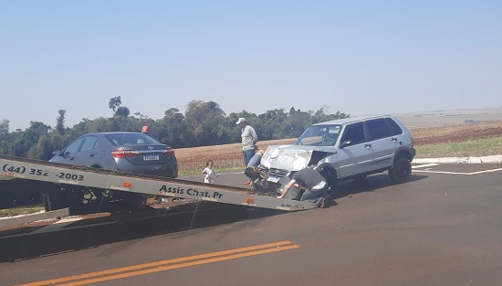 Um acidente de trânsito foi registrado por volta das 11h00, na rodovia PR 239, trecho que liga Assis Chateaubriand a Tupãssi e envolveu um Fiat Uno Mille de Assis Chateaubriand, conduzido por um rapaz de 24 anos, com ferimentos e um Toyota Corolla de Tapira, conduzido por uma jovem de 29 anos, que não sofreu ferimentos, porem a passageira de 46 anos, com ferimentos.
