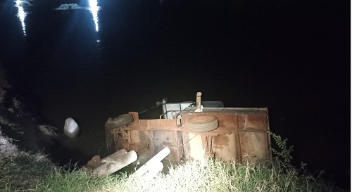 Foi visualizado que o veículo havia caído dentro de um açude na propriedade, e o homem se encontrava em óbito.