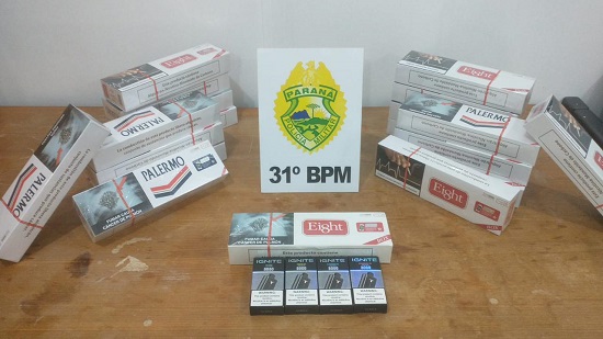 Em busca, foi localizado uma mochila com 19 pacotes de cigarros, somados a mais 04 cigarros eletrônicos.