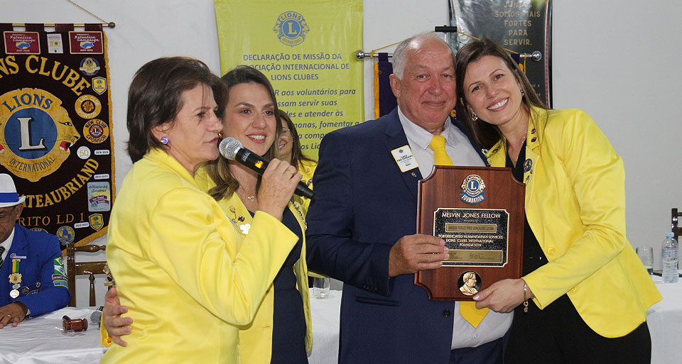 HOMENAGENS – Durante a noite festiva foi realizada também homenagens aos aniversariantes, às mulheres e posse dos Leãozinhos: Gustavo e Rafaella. Contudo, o grande destaque foi o título Melvin Jones, concedido a Companheira Leão, Anneíse Peruzo Pires Gonçalves Luciano em reconhecimentos à contribuição financeira com a Fundação Internacional de Lions, que financia projetos sociais em praticamente todos os países do mundo. Anneíse é a terceira de sua família a receber a honraria. Sua mães Janete Peruzou Pires Gonçalves já companheiro Melvin Jones e seu pai, Flávio Pires Gonçalves também.