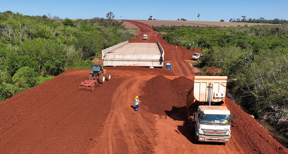 A empreiteira responsável montou um canteiro de obras, fez limpeza, escavação e compactação de aterros, construiu galerias e caixas de drenagem, e iniciou a montagem das vigas que serão usadas no viaduto sobre o trevo de acesso ao complexo agroindustrial da C.Vale. Também foi realizada a impermeabilização de um trecho que já recebeu uma camada de brita e teve início a colocação das primeiras estacas de concreto que vão sustentar o viaduto.