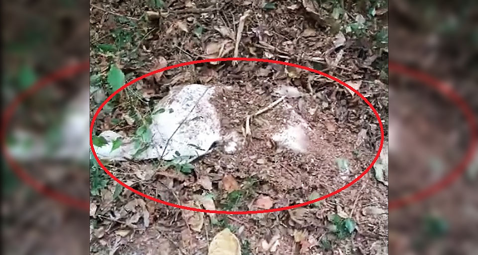 Ao seguir os rastros e entrar em uma mata ao lado da lavoura encontrou o bezerro morto e enterrado em meio as folhas.