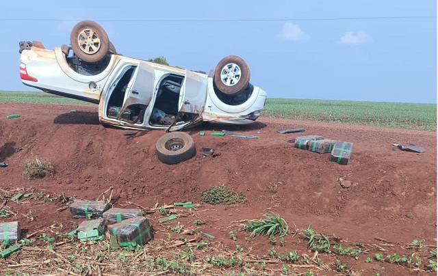 Por volta das 15h15 de ontem (17)m a PM recebeu uma ligação anônima, relatando que uma L200 Triton teria capotado em uma estrada rural do Encantado do Oeste, distrito de Assis Chateaubriand A equipe RPA deslocou onde estava o referido veículo capotado, o condutor já tinha se evadido, o veículo estava carregado com maconha e posterior pesado a droga totalizou 430kg.