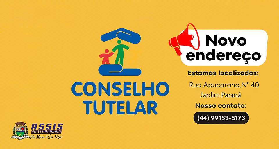 O Município de Assis Chateaubriand informa à comunidade que o Conselho Tutelar está atendendo em novo endereço, situado na rua Apucarana, nº40, no Jardim Paraná. O horário de atendimento presencial é de segunda-feira a sexta-feira, das 8h às 12h e das 13h30 às 17h30. Além disso, a equipe do Conselho Tutelar disponibiliza um telefone de plantão, com o número 44 99153 5173, para atendimento em casos de urgência ou emergência.