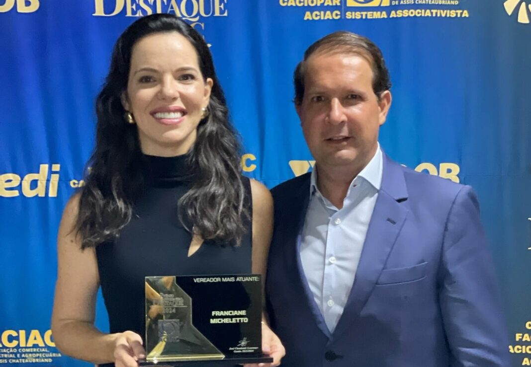 A vereadora Franciane Micheletto foi agraciada com o prêmio “Vereadora Destaque 2024”, concedido pela Associação Comercial, Industrial e Agropecuária de Assis Chateaubriand (ACIAC). O reconhecimento reflete seu trabalho dedicado e o compromisso com a população do município. Em declaração, Franciane destacou a emoção de receber a honraria e fez questão de compartilhar o mérito com os cidadãos que confiam e apoiam seu trabalho.