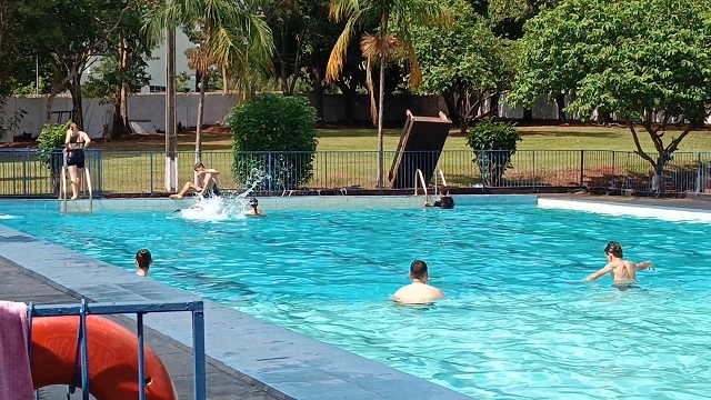 Sexta-feira quente em Assis Chateaubriand, abafada, mas para essa turminha que está nesta piscina, esta relaxante e divertida